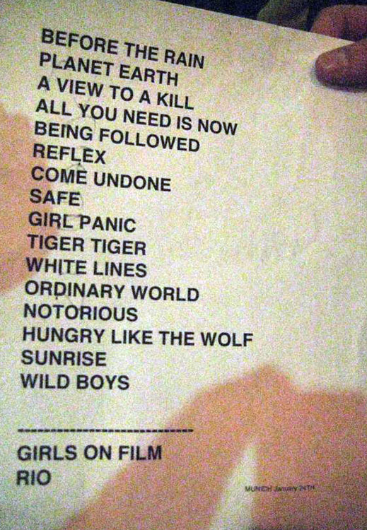 Simon Le Bon (vocals), John Taylor (bass guitar), Nick Rhodes (keyboards), Roger Taylor (drums)