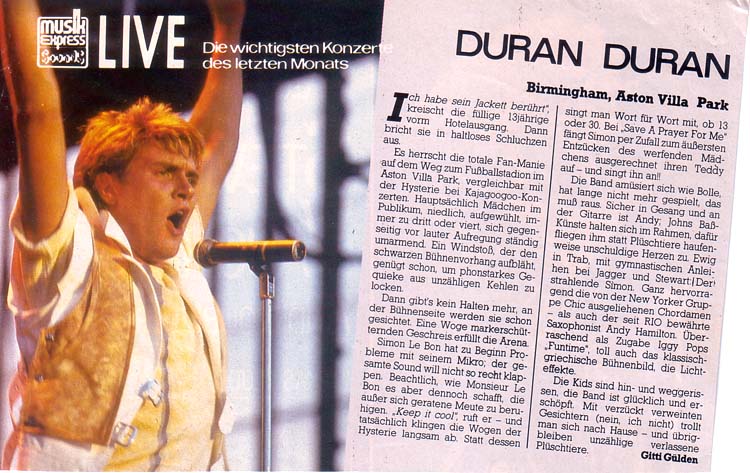 Simon le Bon (vocals), Andy Taylor (guitar), John Taylor (bass guitar), Roger Taylor (drums), Nick Rhodes (keyboards)