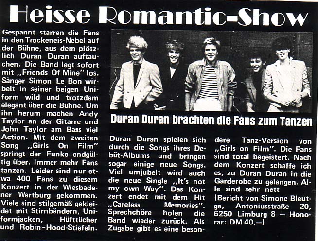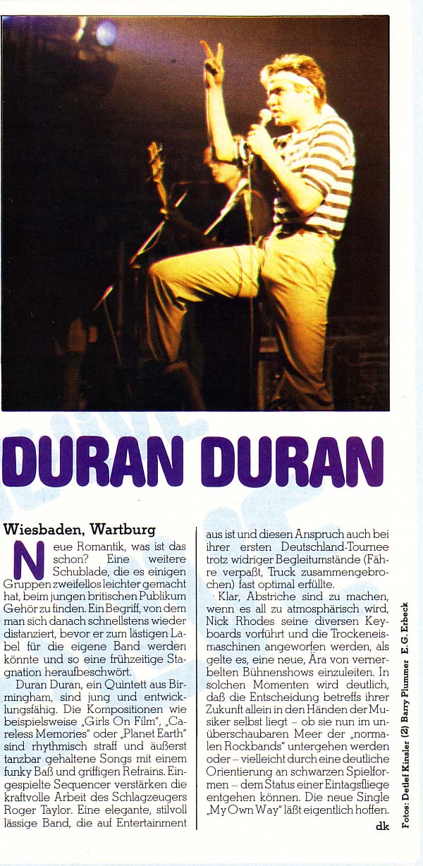 Simon le Bon (vocals), Andy Taylor (guitar), John Taylor (bass guitar), Roger Taylor (drums), Nick Rhodes (keyboards)